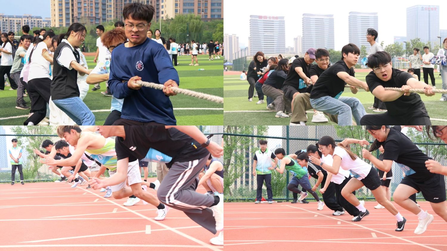 学生组拔河比赛中,队员们青筋暴起却笑容灿烂,此起彼伏的加油声化作奋进动力;短跑选手如离弦之箭,绷紧的肌肉线条勾勒出青春最美的剪影。教师组更是精彩纷呈:拔河赛场上的学者们化身“力士”,背对背拥“爆”时的默契配合引发阵阵欢笑,三尺讲台外的别样风采令人耳目一新。
