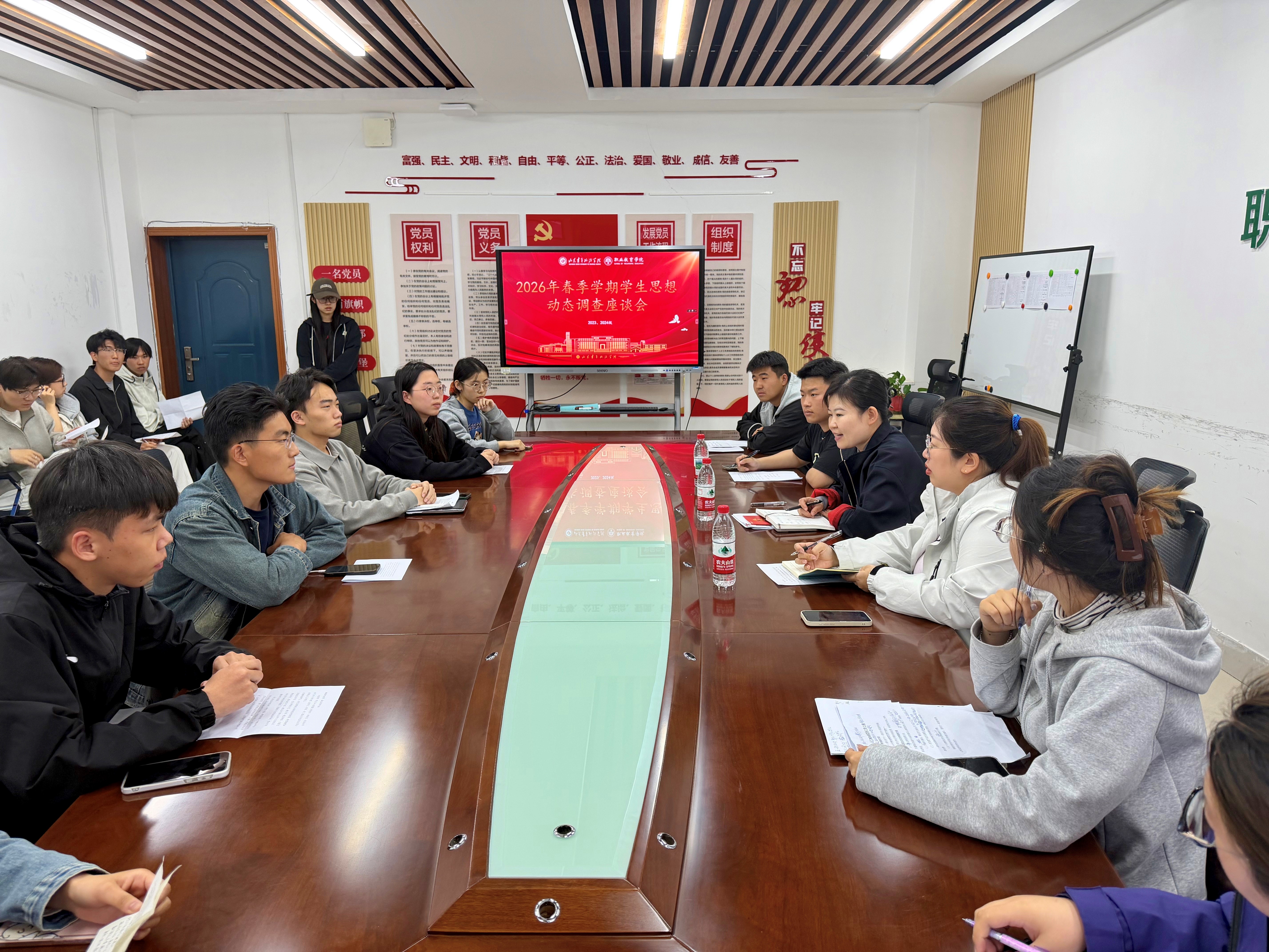 为精准掌握学生思想动态,切实回应学生学习生活诉求,不断提升育人服务质量,近日,yl6809永利检测中心召开学生思想动态调查座谈会。学院党委副书记袁中华及辅导员与来自16个专业的59名学生代表一同座谈交流。