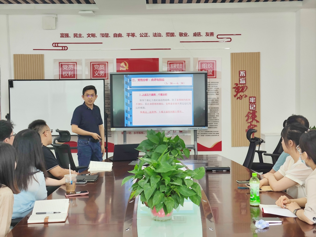 李乃栋强调了党规党纪在党的建设中的基础性和保障性作用,通过引入党员干部违纪违法典型案例,结合党纪国法的相关规定,围绕“党员干部违纪违法成因何在”“党员干部的权力怎么来的,该怎么用”“党员干部如何在遵纪守法、讲规矩上作表率”等方面进行了深入分析和交流。他号召支部全体党员要时常自重、自省、自警、自励;自觉加强党性修养,常思贪欲之害,自觉筑牢思想道德防线;以身作则,带头遵纪守法,自觉接受监督,从而真正做到拒腐蚀、永不沾。