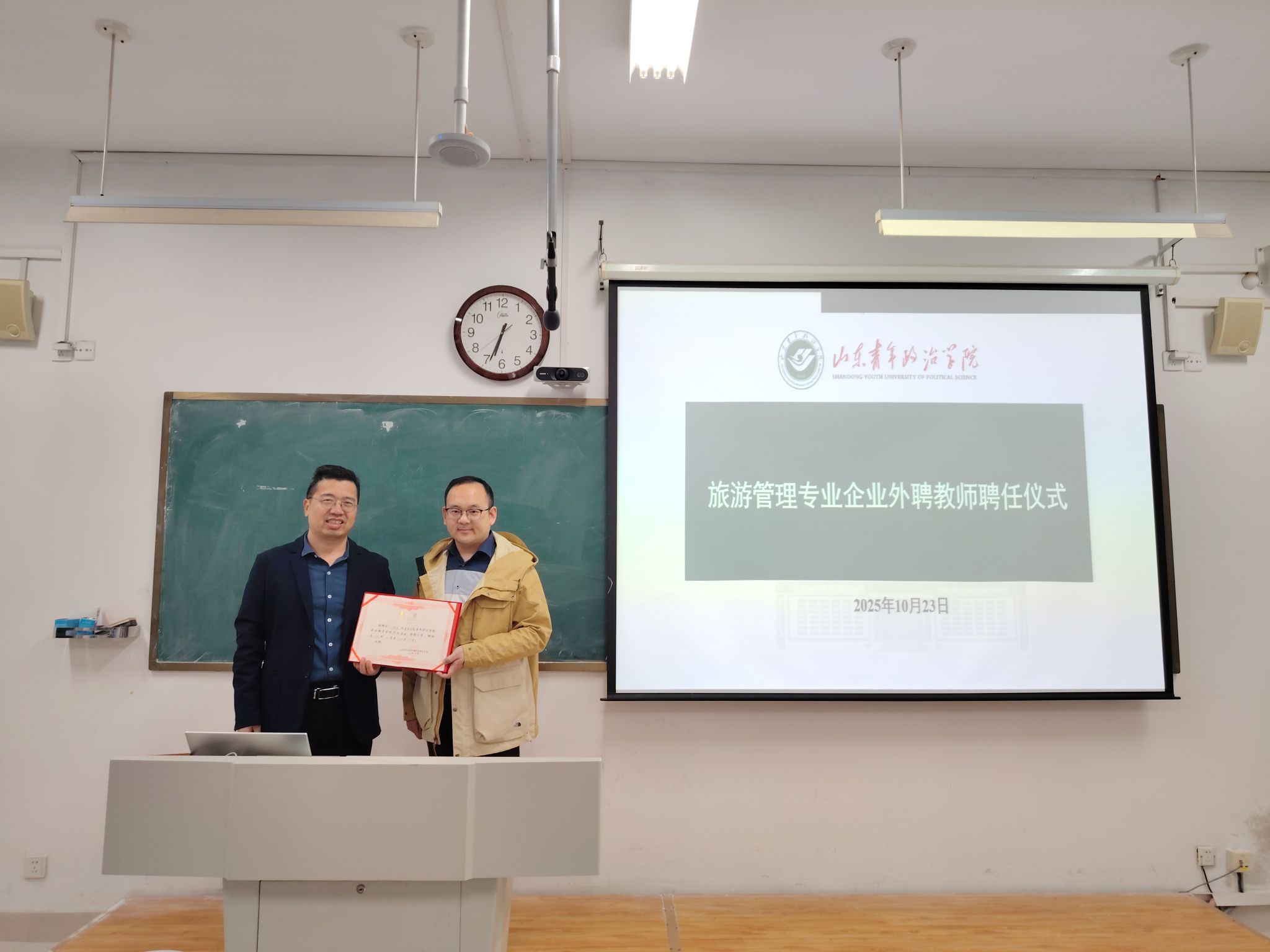 2025年10月23日,旅游管理专业企业外聘教师聘任仪式在知行楼413举行,正式聘任山东康辉旅行社总经理刘明光、副总经理臧庆贺为yl6809永利检测中心旅游管理专业产业导师,聘任环节结束后,刘明光总经理以《当代旅行社发展简析》为题,为在场师生带来了一场内容丰富、见解独到的专题讲座。